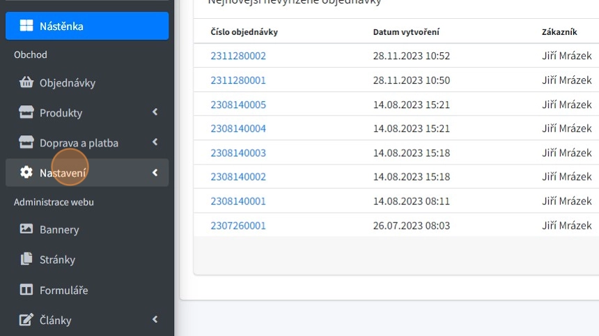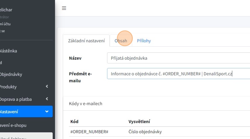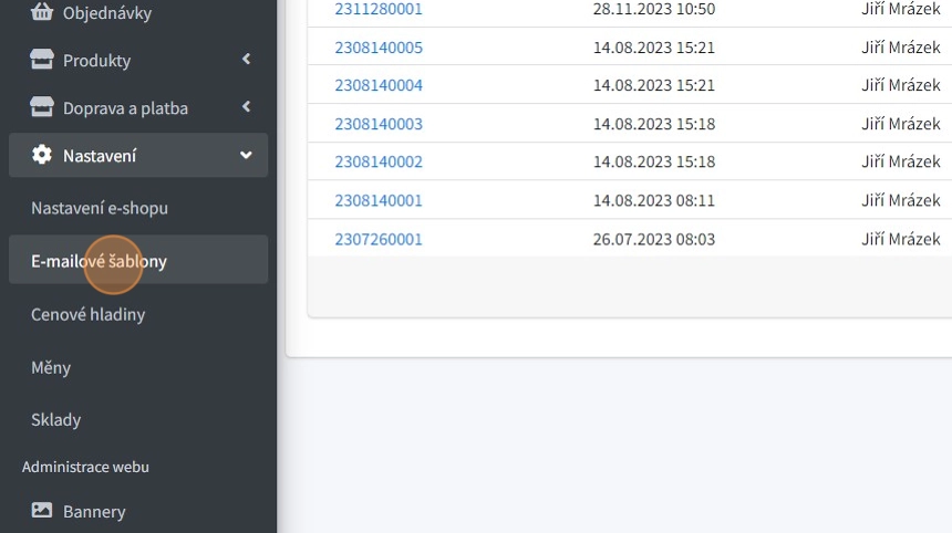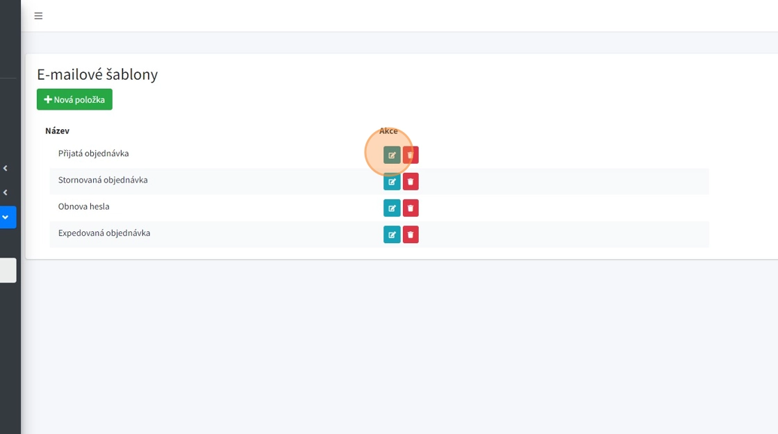 2. Volba "E-mailové šablony" - umožnuje editovat maily, které se odešlou zákazníkovi při změnách stavů objednávky.