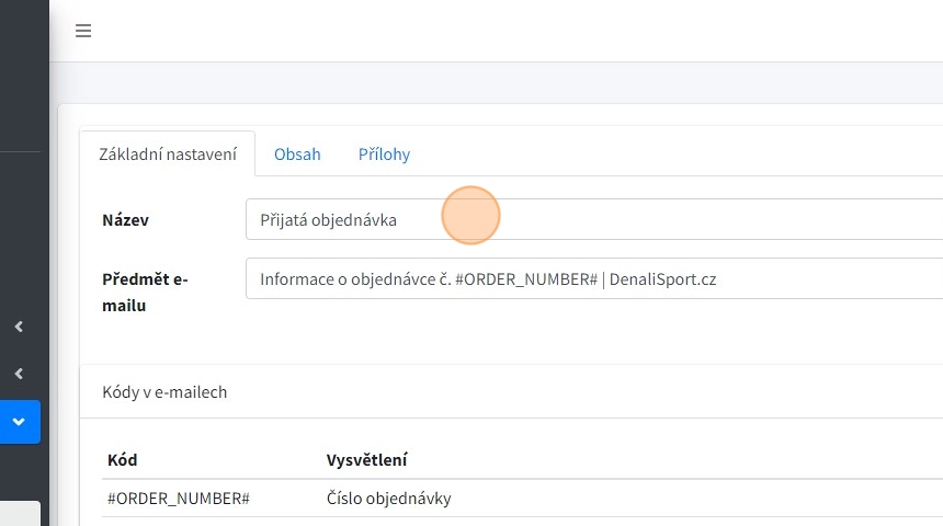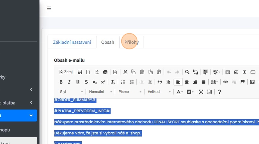 6. "Obsah" - v této záložce lze editovat tělo emailu.