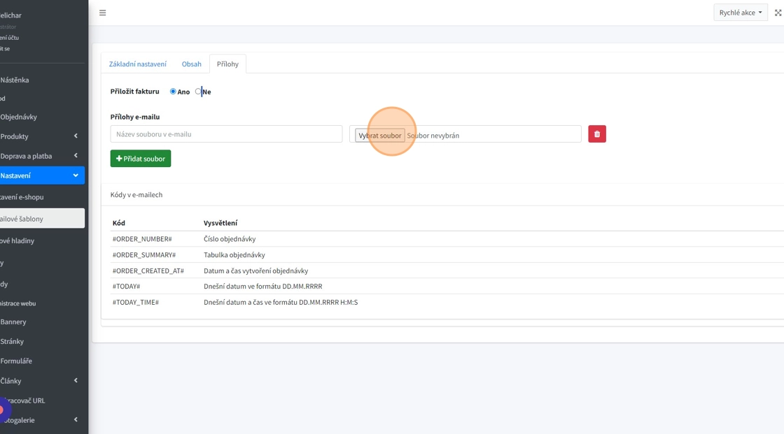 8. Pole "Přiložit fakturu" - pro vložení faktury k odeslanému mailu.