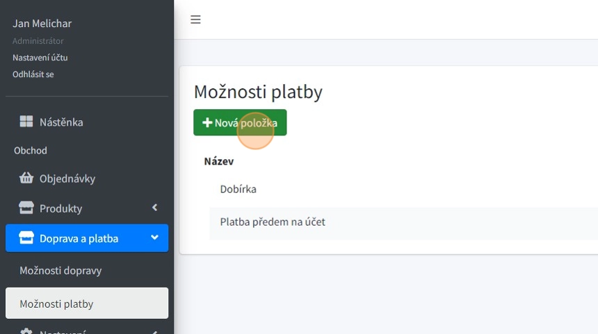 2. Tlačítkem "Nová položka" lze vytvářet nové možnosti platby