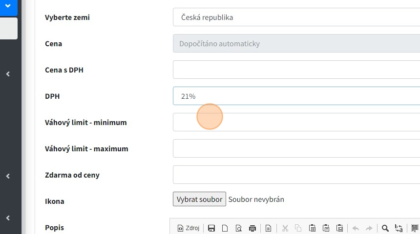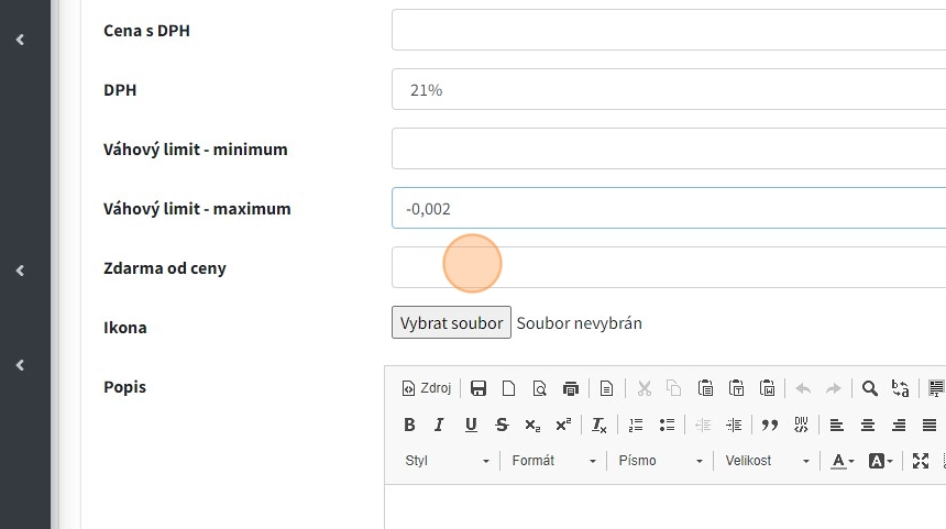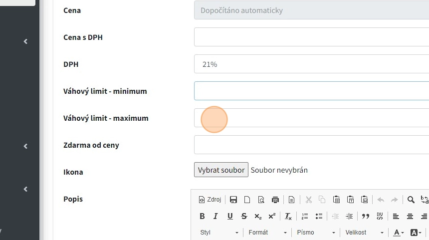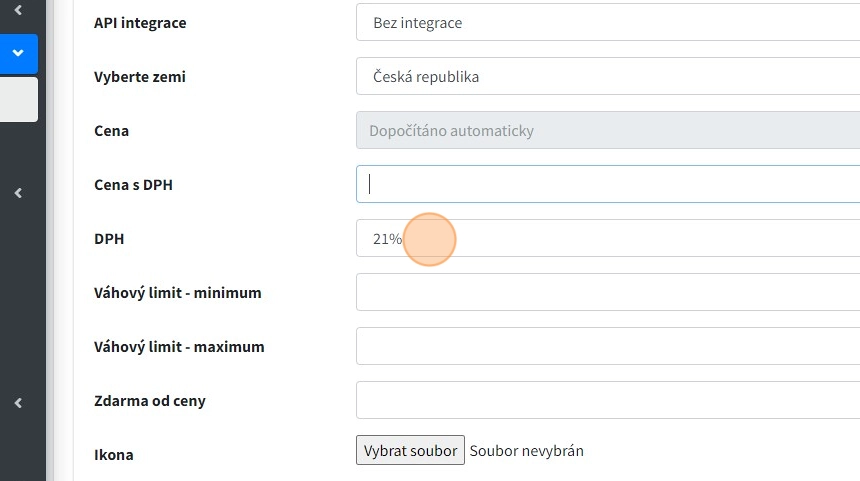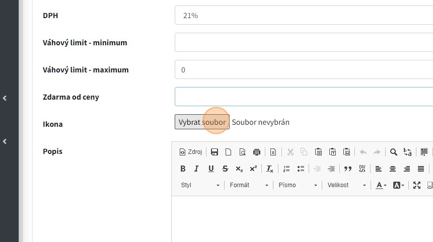 12. Pole "Ikona" - pro nahrání ikony dopravy (např.: logo zásilkovny)