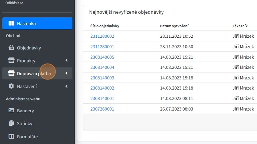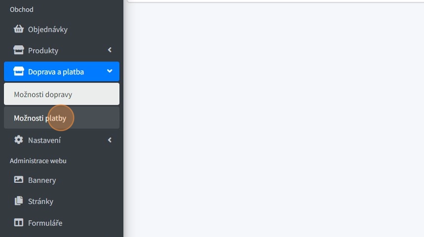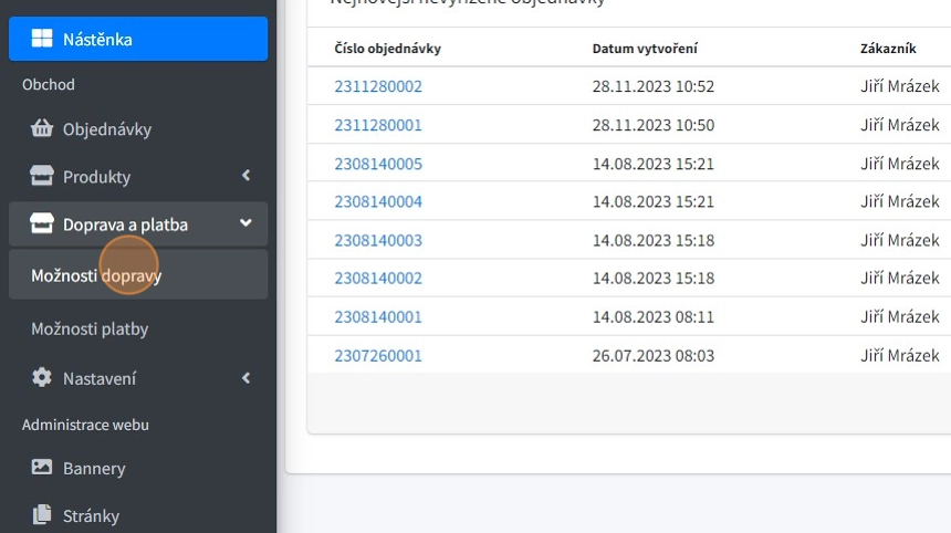 Tip: V tomto modulu lze vytvořit a upravovat jednotlivé metody dopravy a platby, které eshop zákazníkovi nabízí.