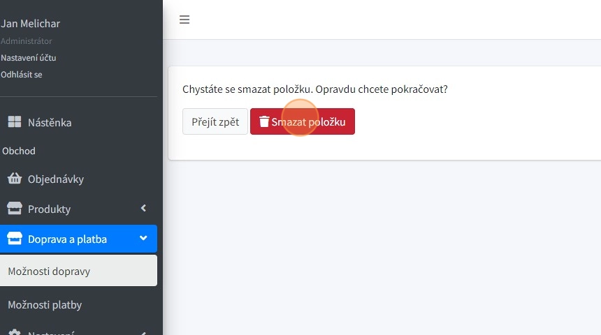 16. Smazání je nutno potvrdit tlačítkem "Smazat položku"