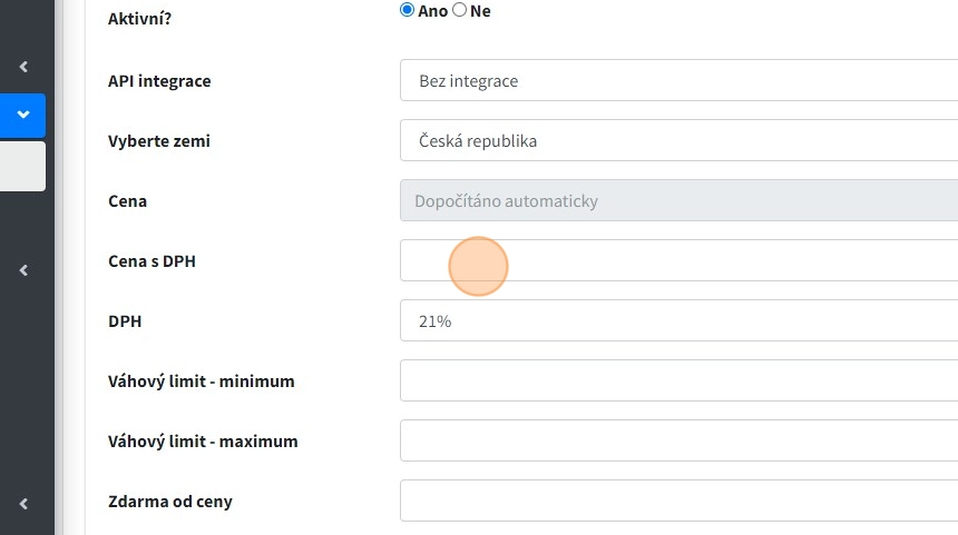 7. "Cena s DPH" - zadání ceny dopravy s DPH