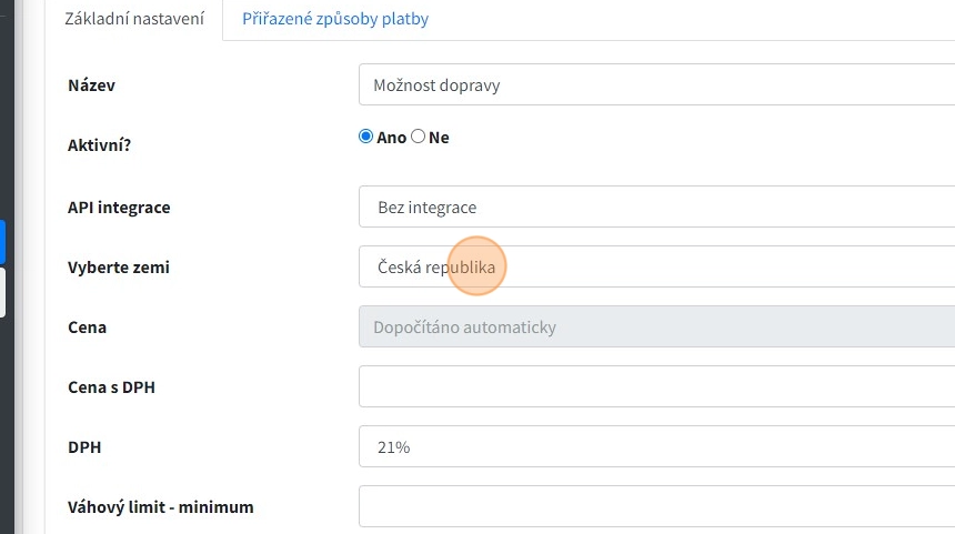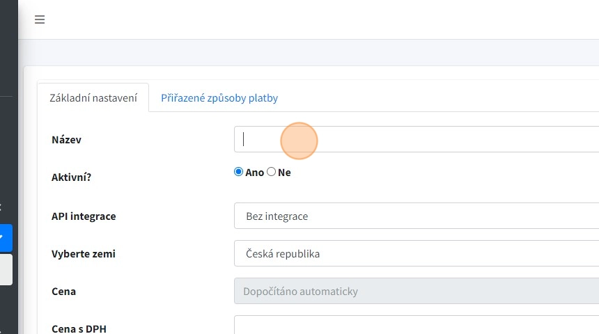 3. Pole "Název" - pro vyplnění názvu možnosti dopravy (zásilkovna, pošta atd...)