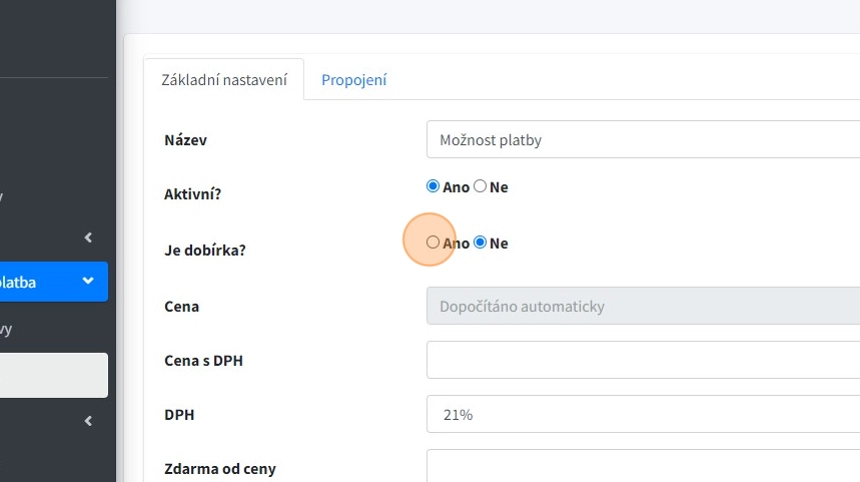 5. Je dobírka? - určuje zda je pro danou platbu možná dobírka