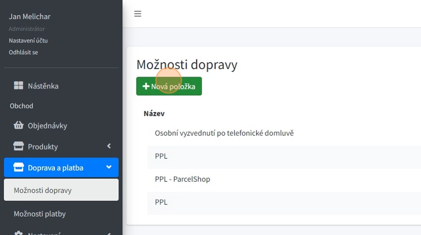 2. Tlačítkem "Nová položka" lze vytvořit novou možnost dopravy