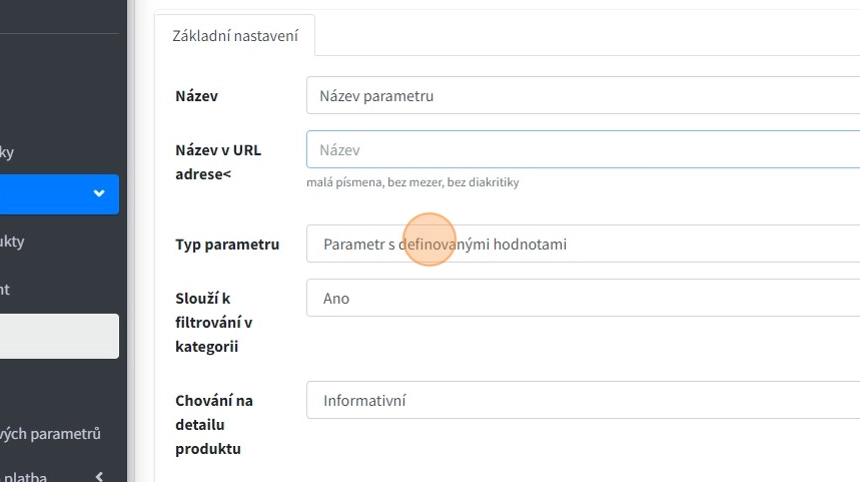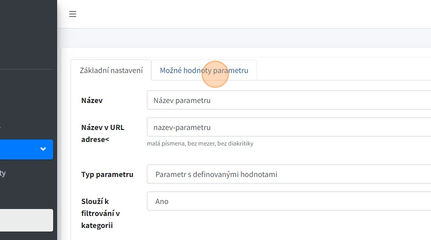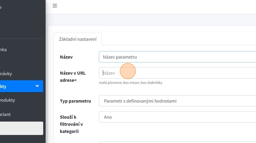 3. "Název v URL adrese" - generuje se automaticky z názvu parametru
