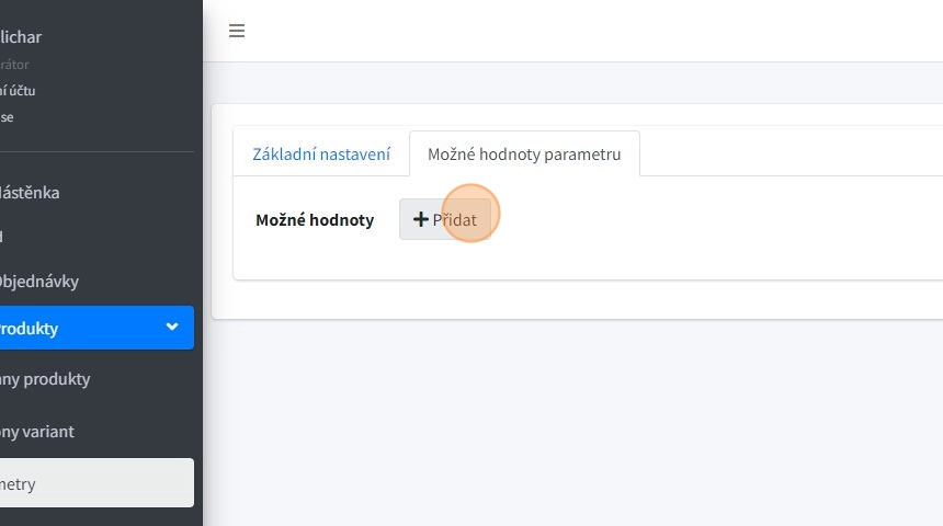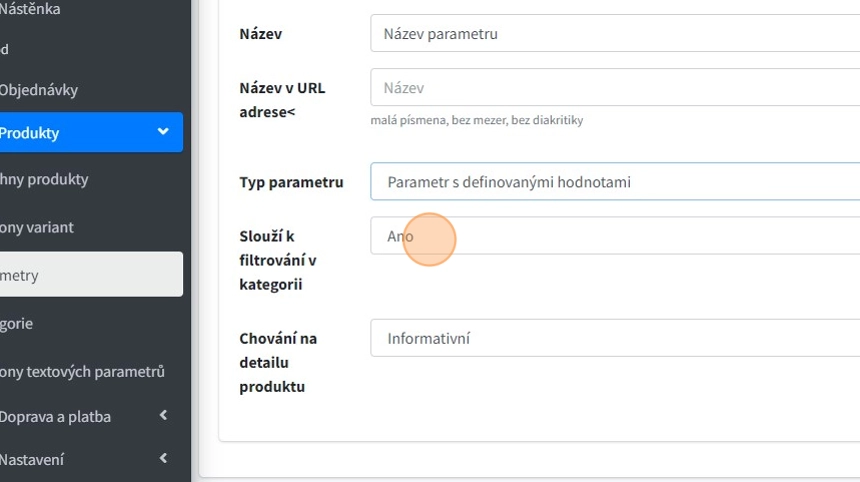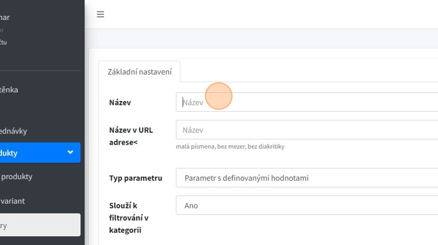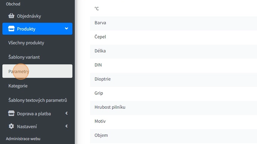 Tip: V této sekci lze vytvářet parametry produktu, které lze následně přiřazovat k produktům při jejich vytváření. Parametry produktů lze poté také využít při vytváření variant produktu , či při filtraci výpisu produktu v uživatelské části eshopu.