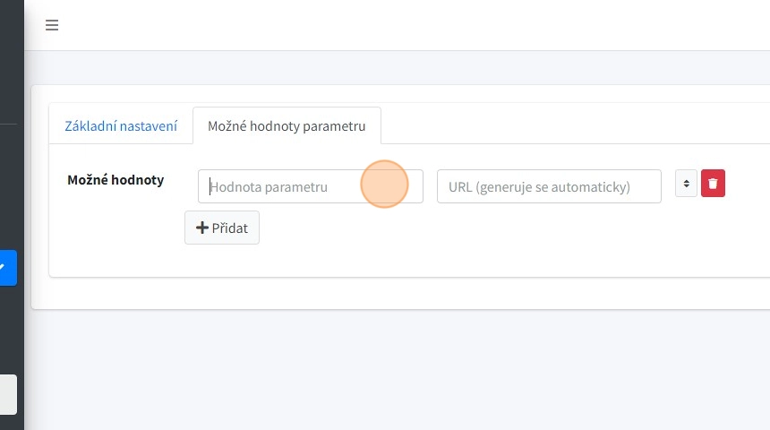2. Tlačítkem "Přidat" - lze vytvářet možné hodnoty parametru