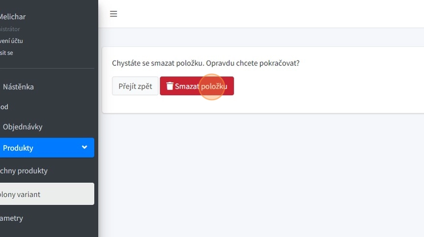 7. Každé smazání je nutno potvrdit tlačítkem "Smazat položku".