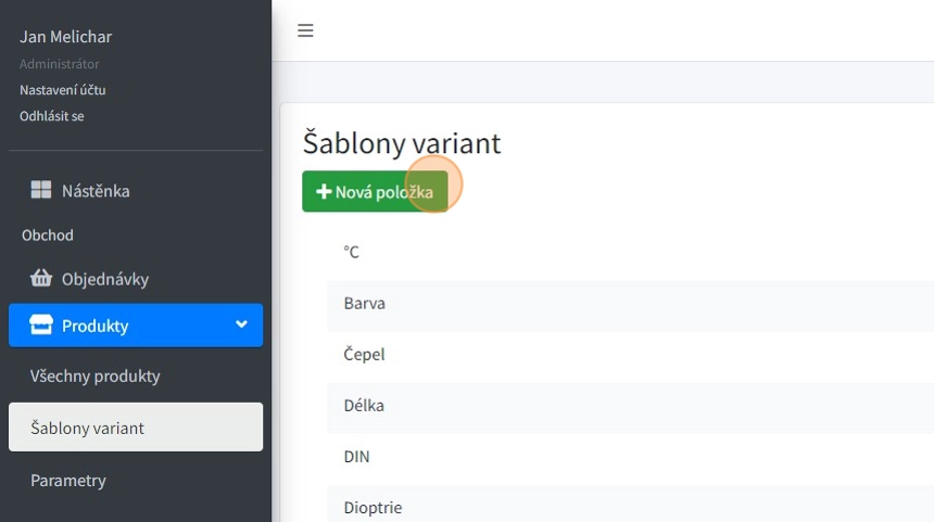1. Šablonu varianty lze vytvořit pomocí tlačítka "Nová položka"
