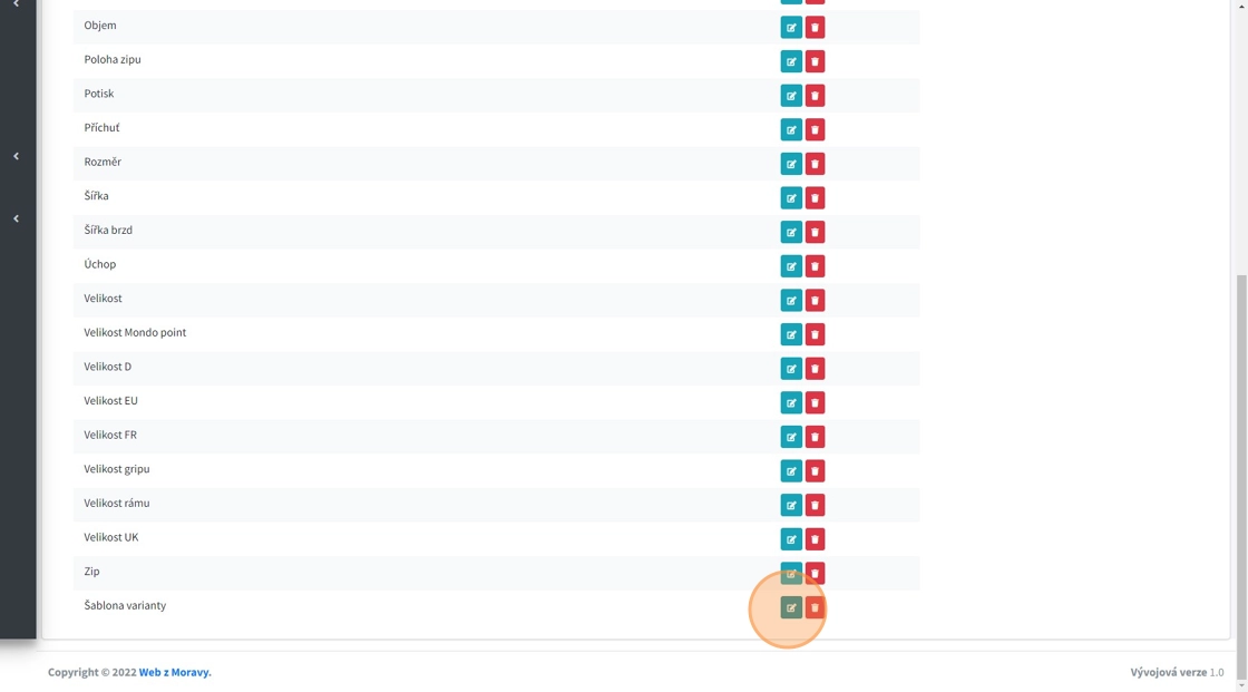 5. Pro editaci šablony variant slouží modré tlačítko v pravém sloupci.