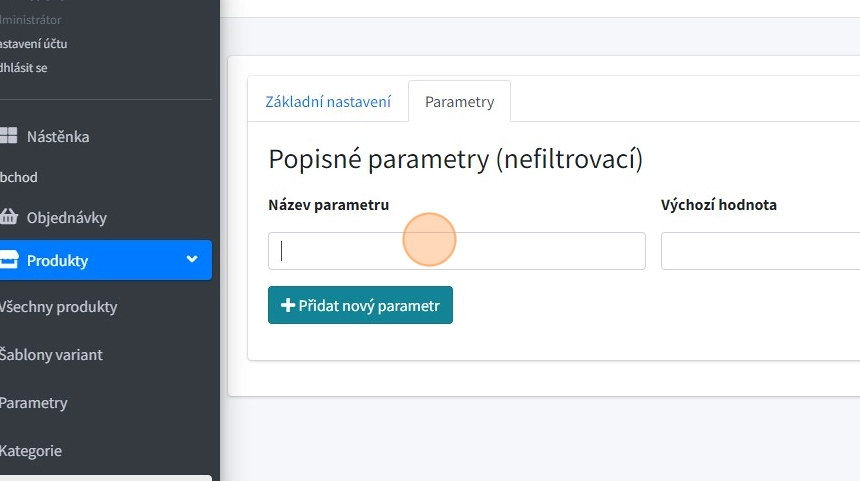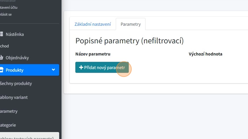 6. Tlačítko "Přidat nový parametr" - pro vytvoření parametru do šablony